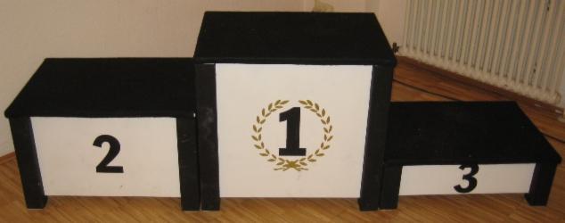 Siegerpodest und Aufbewahrungskiste für den Rennbahnzubehör in Einem.