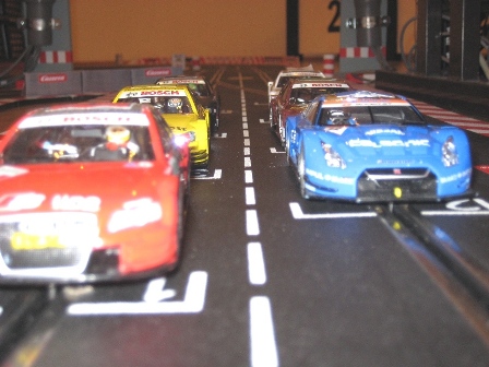 Gefahren wurde auf einer Carrera Digital 132 Rennbahn mit 6 Fahrzeugen gleichzeitig.