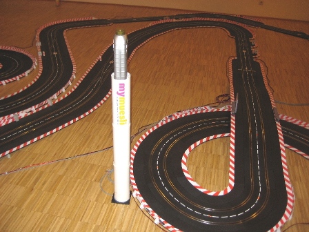 Bahnlänge 38,9m, 5 Kreuzungen, 6 Weichen, eine Boxengasse